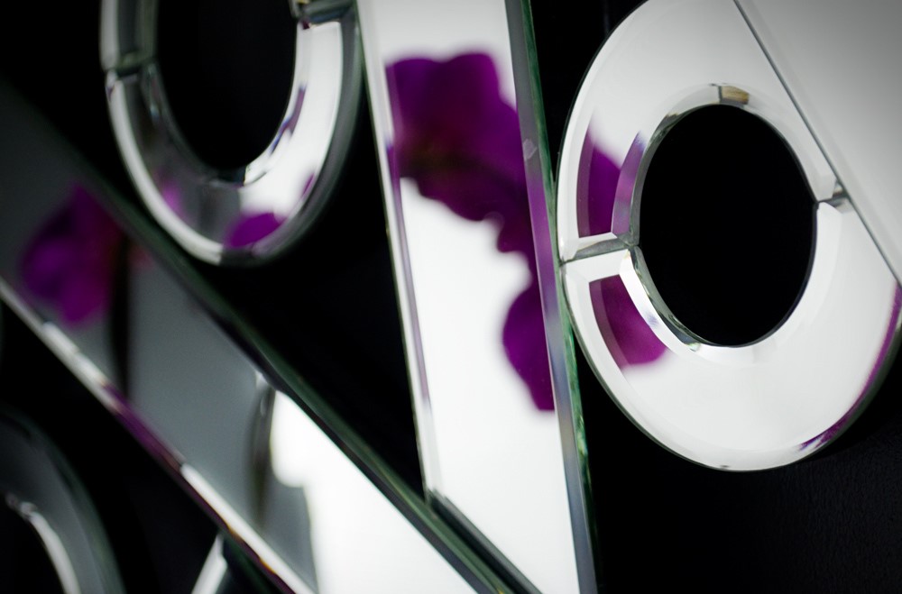 Niesamowita dekoracja złożona z wielu luster kształtem przypominającym różne figury geometryczne. Każde z nich jest pieczołowicie szlifowane fazą. Złożone w całość dostarcza ciekawych wrażeń wizualnych i pobudza wyobraźnię.