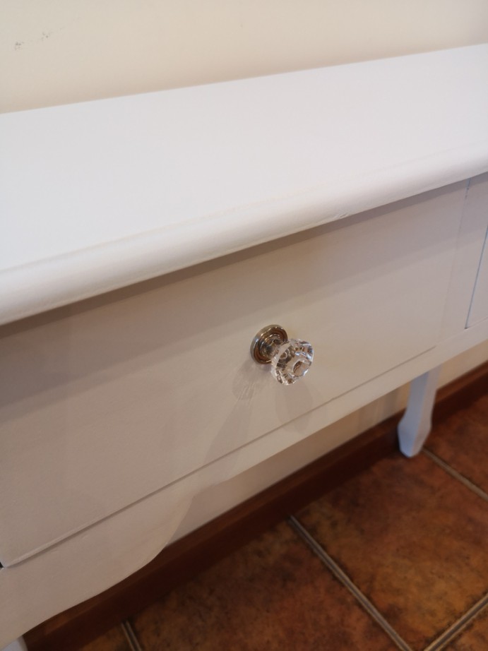 Konsola z dwiema szufladami wykonana z drewna i mdf.