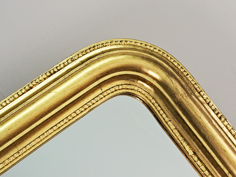 Klasyczne lustro stojące, umożliwiające ustawienie go w dowolnym miejscu. To nie jest wyłącznie lustro umożliwiające przeglądanie. To także piękna dekoracja wnętrza. Rama lustra wykonana jest z drewna i wykończona ręcznie nakładanym złotym szlagmetalem. Lustro posiada solidna podporę. Tafla lustra kryształowa.