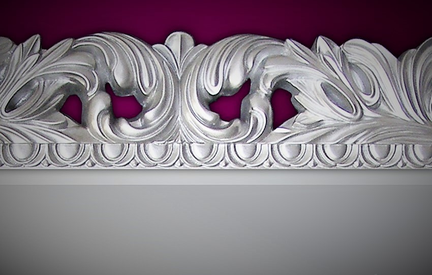 Efektowna szeroka rama wykonana za specjalnej masy PU pokryta srebrnym szlagmetalem. Szlagmetal to cieniutkie listki metalu, ręcznie nakładane i przecierane kamieniem Agatu. Efektem jest niepowtarzalna struktura i kolor ramy.