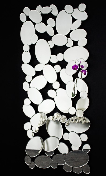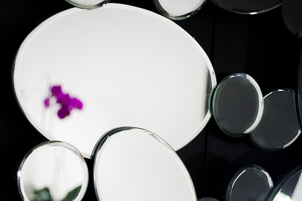 Wysokiej jakości lustro dekoracyjne wykonane z wielu owalnych lusterek. Każde z nich jest starannie oszlifowane fazą i osadzone na czarnej płycie MDF. Dzięki temu lustro jest bardzo stabilne i bezpieczne w użytkowaniu. Lustro standardowo jest przystosowane do powieszenia pionowo lub poziomo.