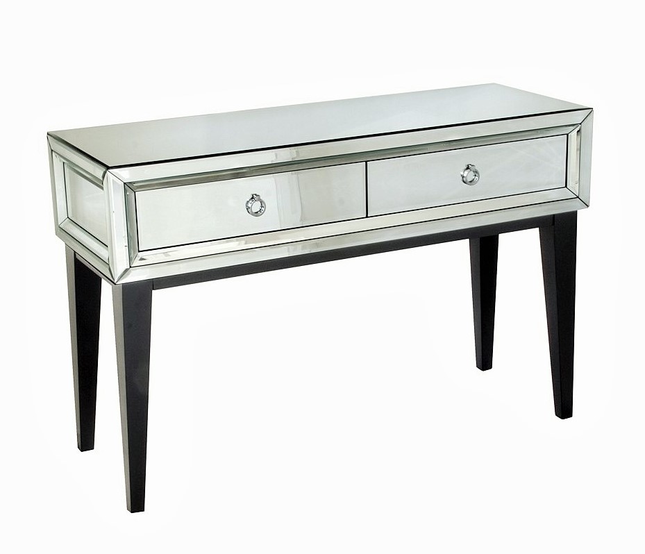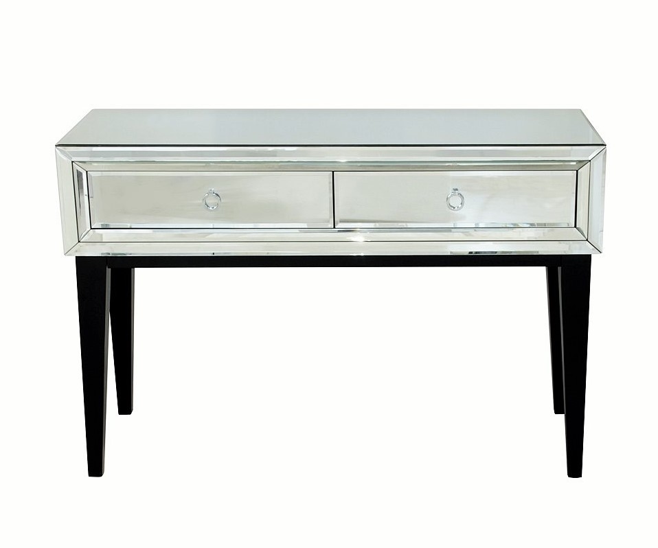 Lustrzana konsola- biurko z czarnymi drewnianymi nogami