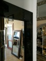 Solidna rama wykonana jest w 100% z litego drewna, którą od przodu wykończono gładkimi elementami czarnego szkła lakobel łączonymi na prosto.