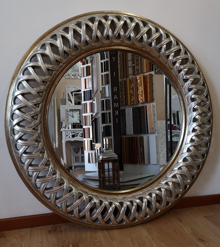 Okazałe lustro z ramą ażurową szampańskie srebro