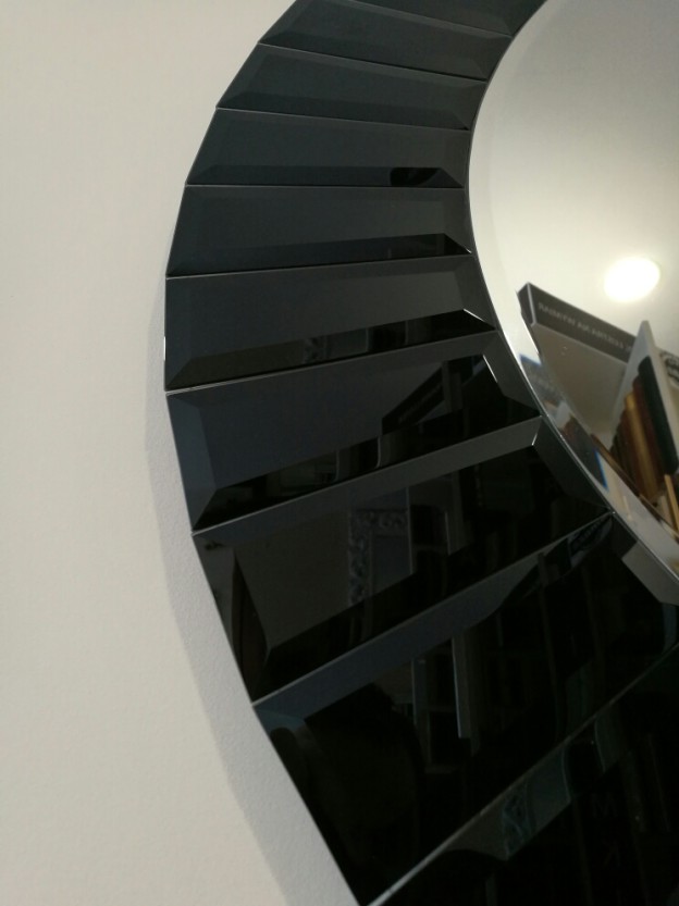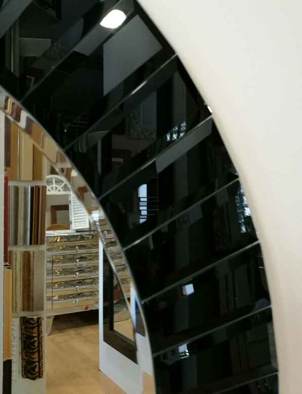Okrągłe lustro z czarną szklaną ramą-dwa wymiary