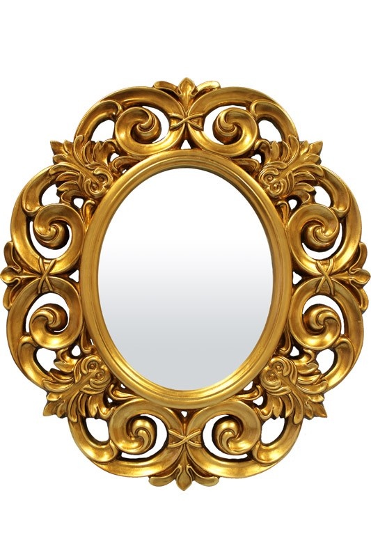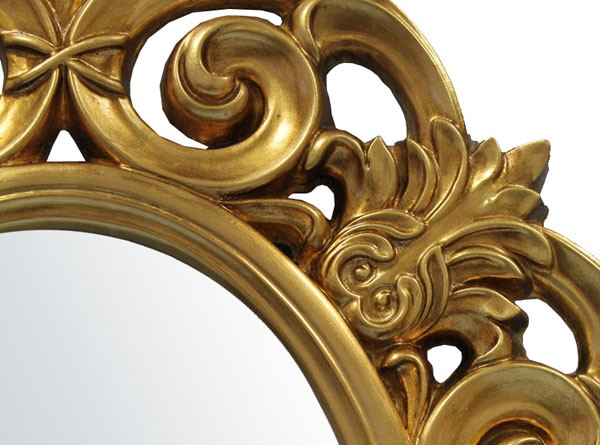 Owalne lustro z ramą ażurową złotą 92x82