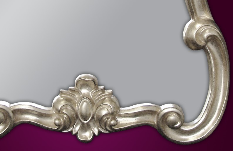 Rama lustra wykonana jest ze specjalnej wysokogatunkowej masy żywicznej i pokryta srebrnym szlagmetalem. Szlagmetal to cieniutkie listki metalu, ręcznie nakładane i dodatkowo przecierane kamieniem Agatu. Efektem jest niepowtarzalna struktura i kolor ramy.