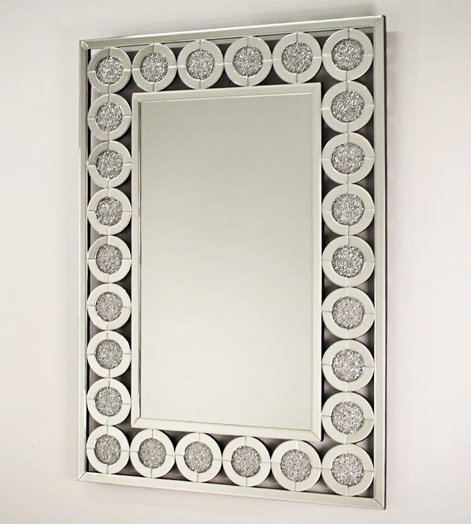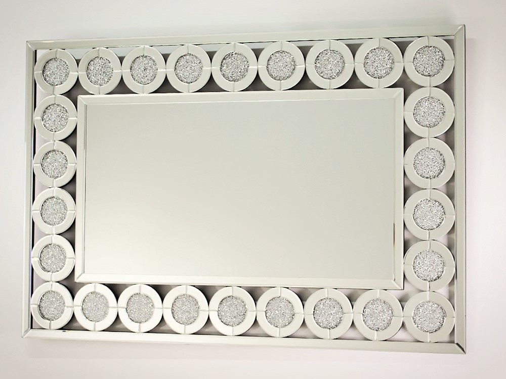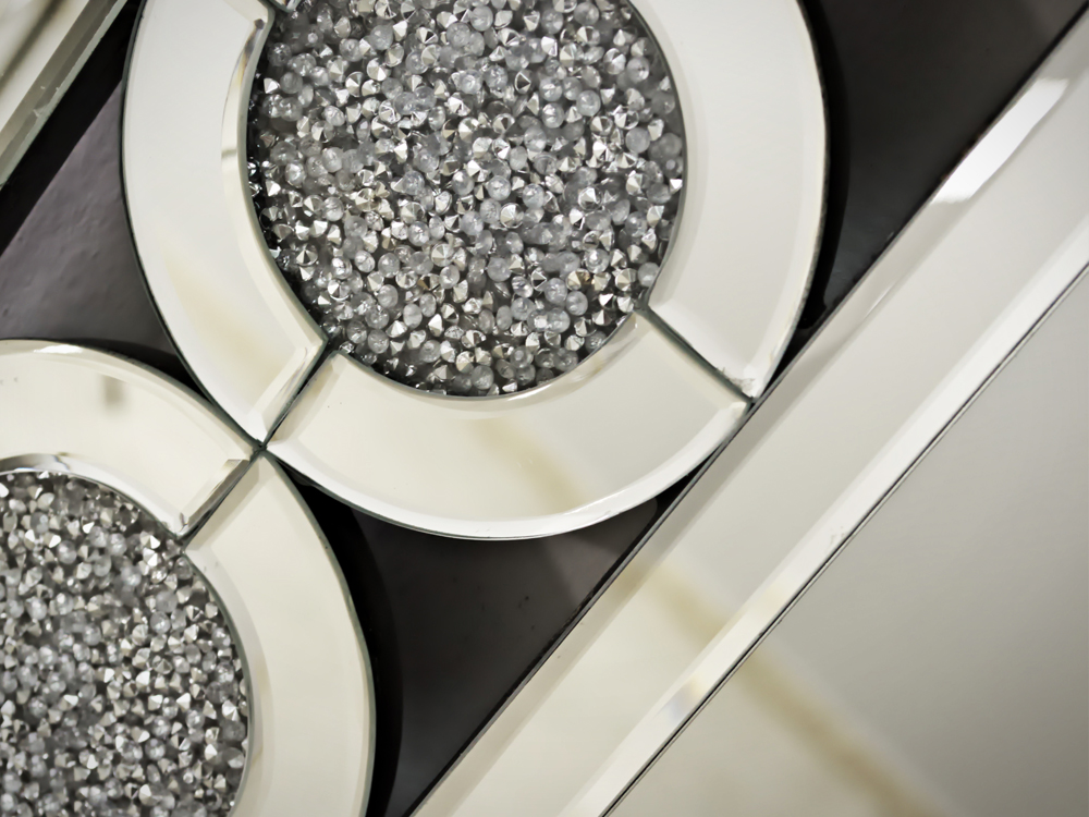 Ramę tworzą okrągłe elementy ułożone ze szlifowanych luster, w środku wypełnione drobnymi kryształkami.
