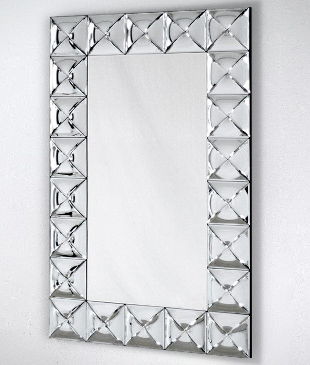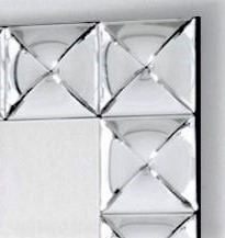 Rama z kwadratowych, giętych szlifowanych lusterek ładnie odbija światło.