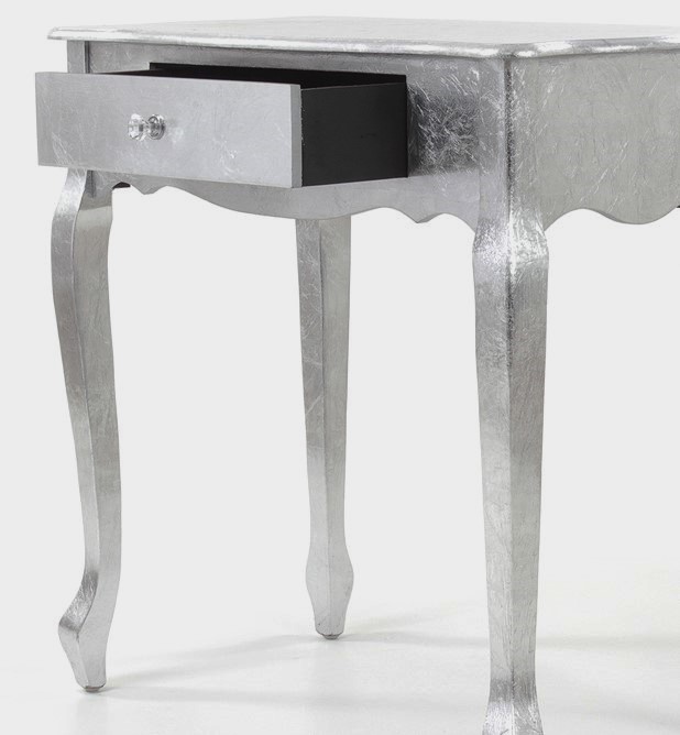 Wykonana z drewna i wykończona srebrnym szlagmetalem.