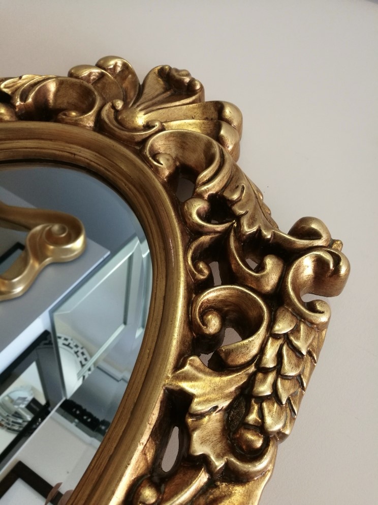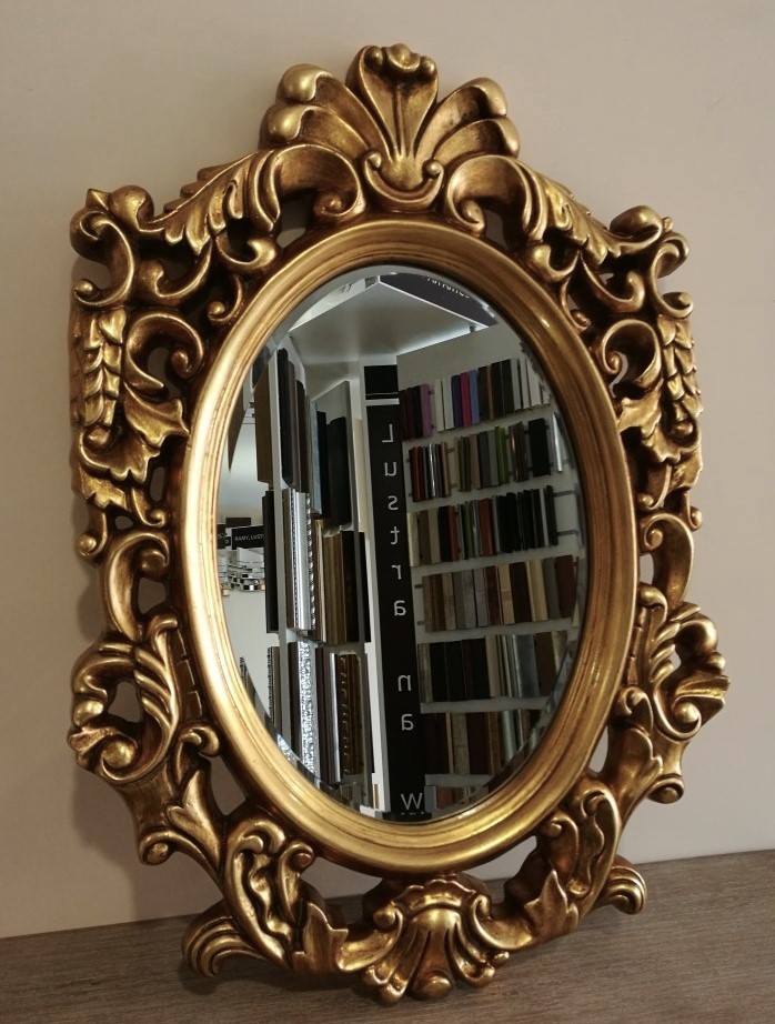 Stylowe owalne lustro z ramą złotą