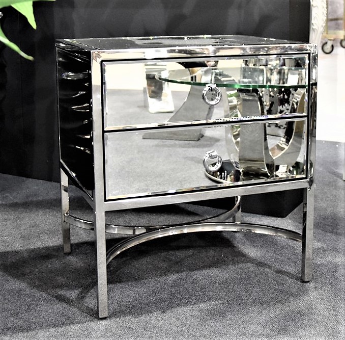 Szafka nocna lustrzana w prostej nowoczesnej formie.