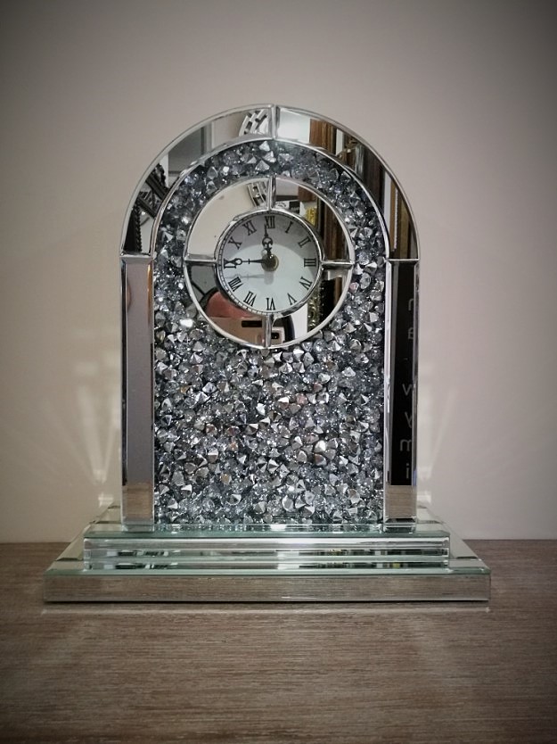 Dodatkową dekoracją są umieszcznone za szkłem szlifowane kryształy.