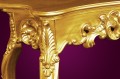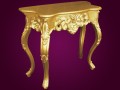Elegancka zdobiona konsola pod lustro wykonana z drewna i pokryta złotym szlagmetalem.